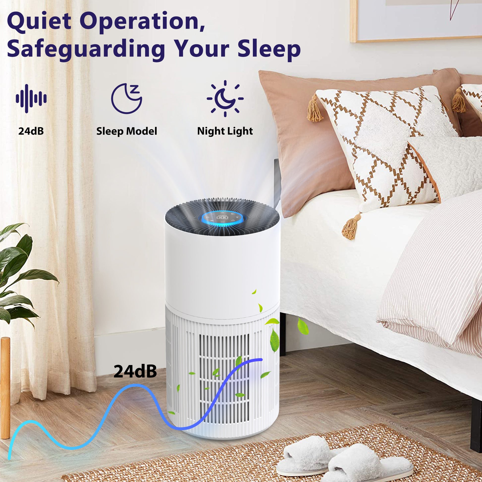 Suitable for More Rooms -- Modern design fits in any space from small to large rooms, such as home, bedroom, studio, pet room, hotel, dormitory, RV and so on. living rooms, offices, nurseries, kitchens and basements. Perfect for pet owners, babies, children, the elderly, or anyone wanting to improve the air quality.